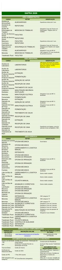 INSCRIÇÕES ABERTAS – RECRUTAMENTO SAFRA 2026